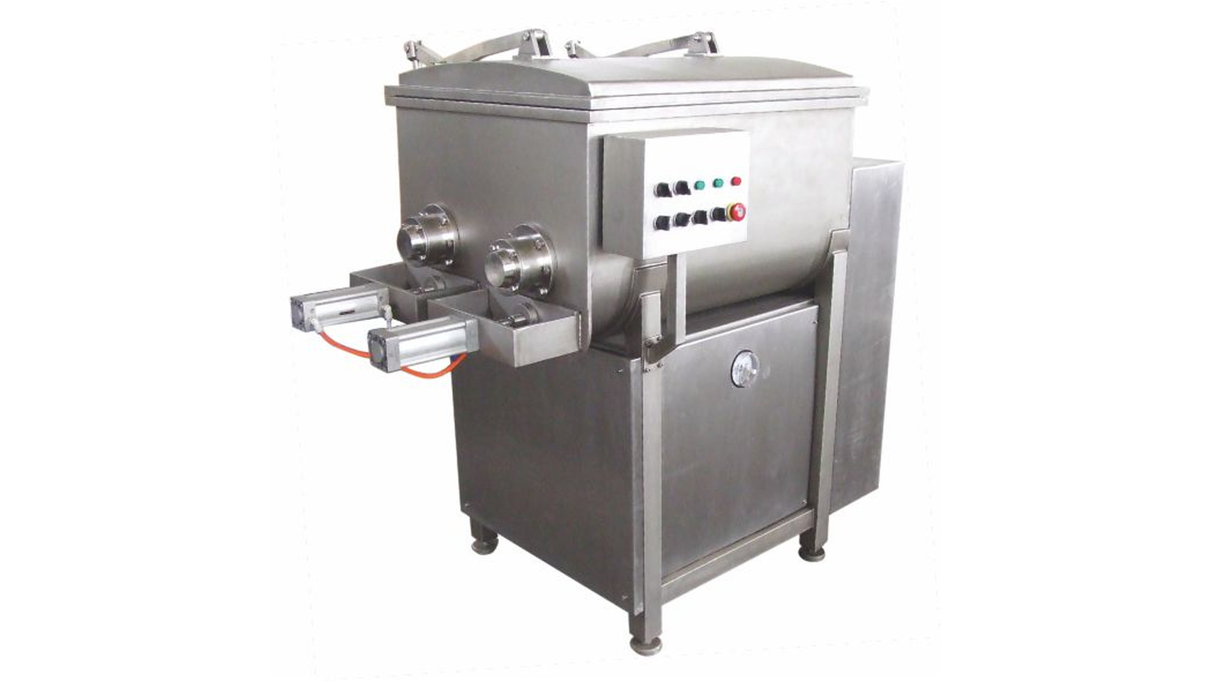 真空和麵機>五螺旋軸擠壓機>魚餃皮壓皮成型機>雙螺旋餡料擠壓機>成型卷包切斷機>包裝輸送工作台