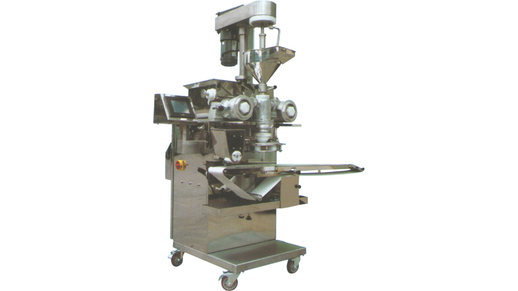The SF-168 model encrusting machine is for producing baking dessert, moon cake, mochi,meat bun and pineapple cake as well as meat and surimi processing products including stuffed meat ball and fish ball. It is an upgraded model, which features in light and handy,convenient operation and high-speed product!on, with production capacity can reach to 100 pcs/min. As a food encrusting machine with many functions, it is also available for automatic adjustment the size of products and ratio of shape dough and stuffing. And it can replace the molding for production of diversified stuffing food.
